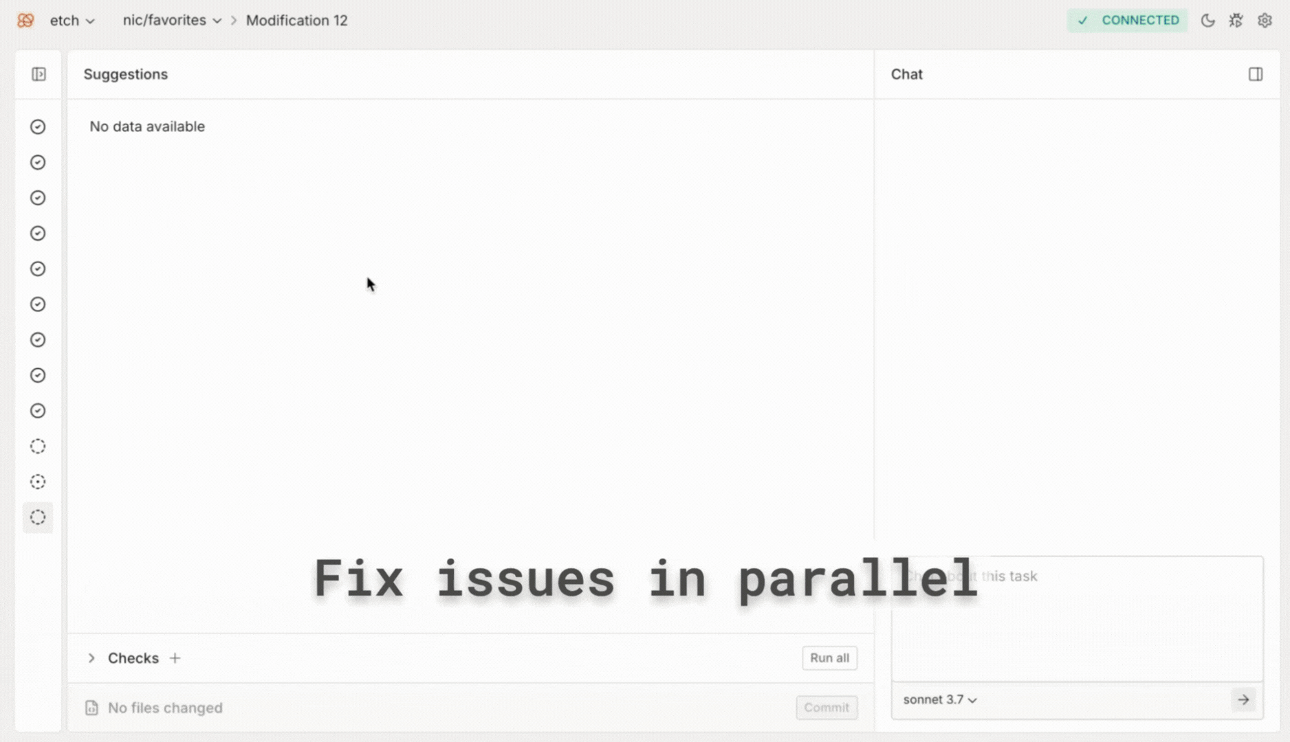 Kick off as many fixes as you want, all in parallel. Review proposed fixes and chat with agents to refine them.