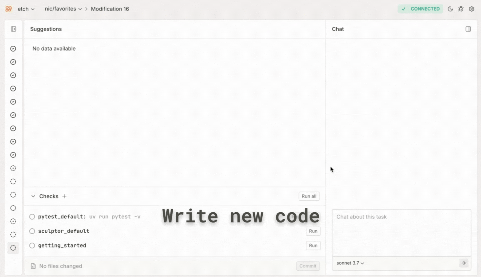 Use Sculptor to resolve bugs, write tests, add new features, improve docs, fix style issues, and make your code better—whether it was written by a human or an LLM.
