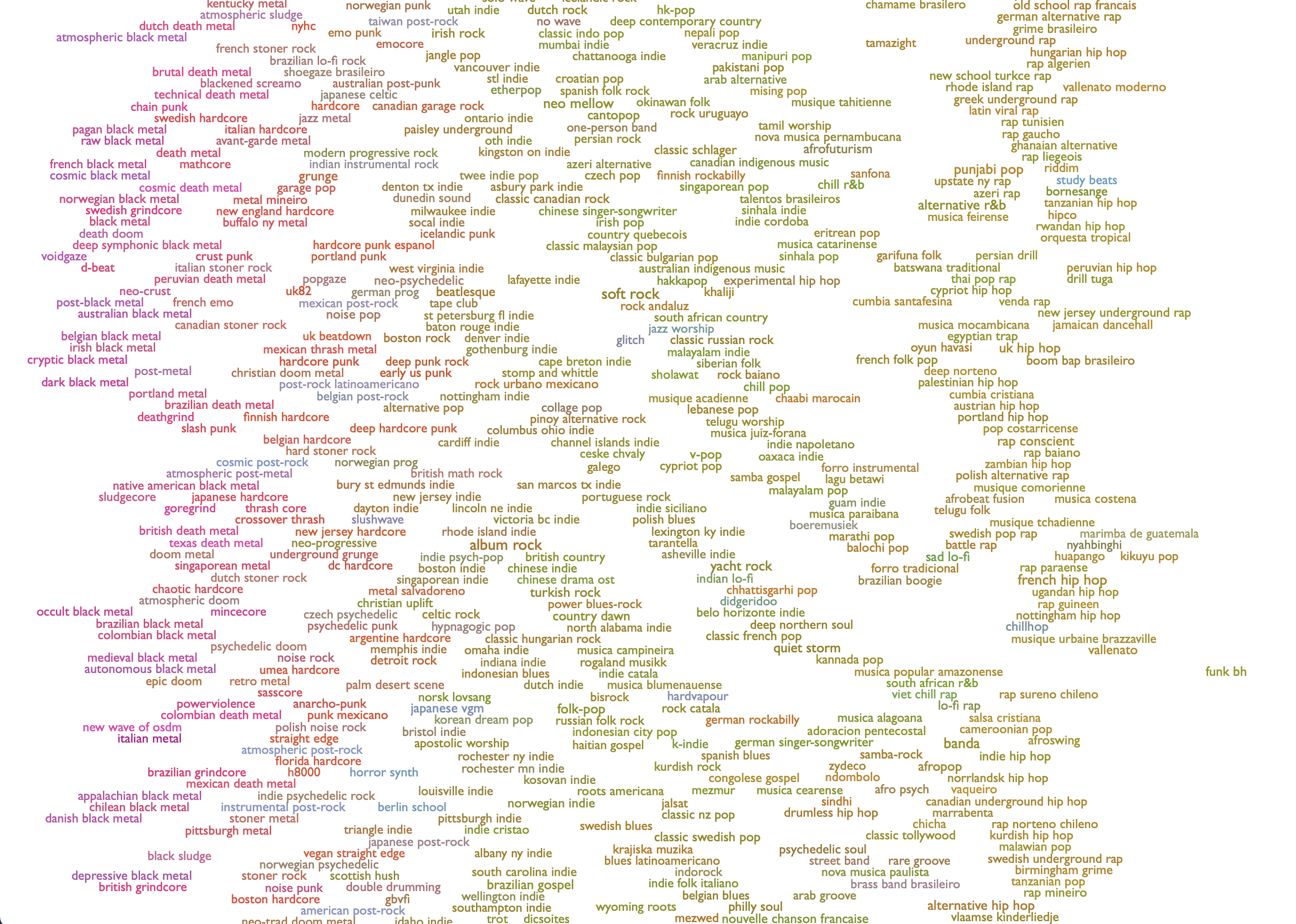 One of Glenn’s most beloved creations was Every Noise at Once, an algorithmically-generated map of 6,291 genres spanning ‘dungeon synth’ to ‘didgeridoo’ that was lauded by Billboard as “one of the most extraordinary sites on the internet.” Though he initially created it as a debugging tool while working at music intelligence firm Echo Nest (which was acquired by Spotify in 2014), it evolved into an essential tool visited by hundreds of thousands of people every month.